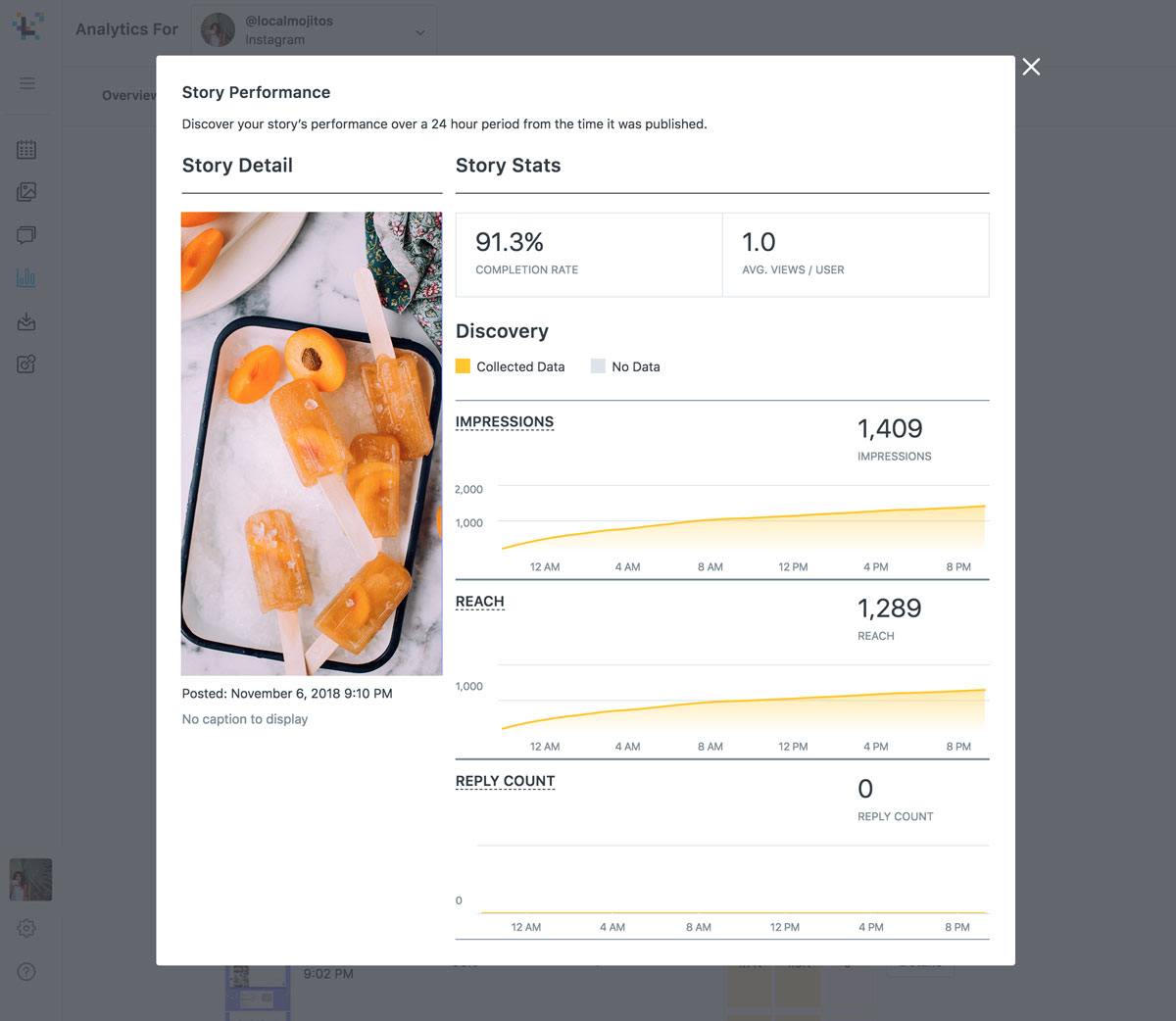 With Later's Instagram Analytics, you can see how your posts perform over time, and across several metrics like comments, likes, and engagement rate. Plus, you can also get Instagram Stories analytics and track up to 3 months' worth of content.